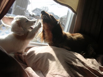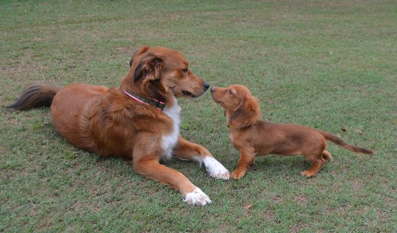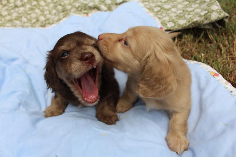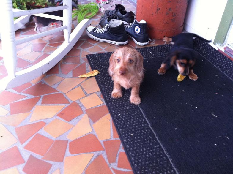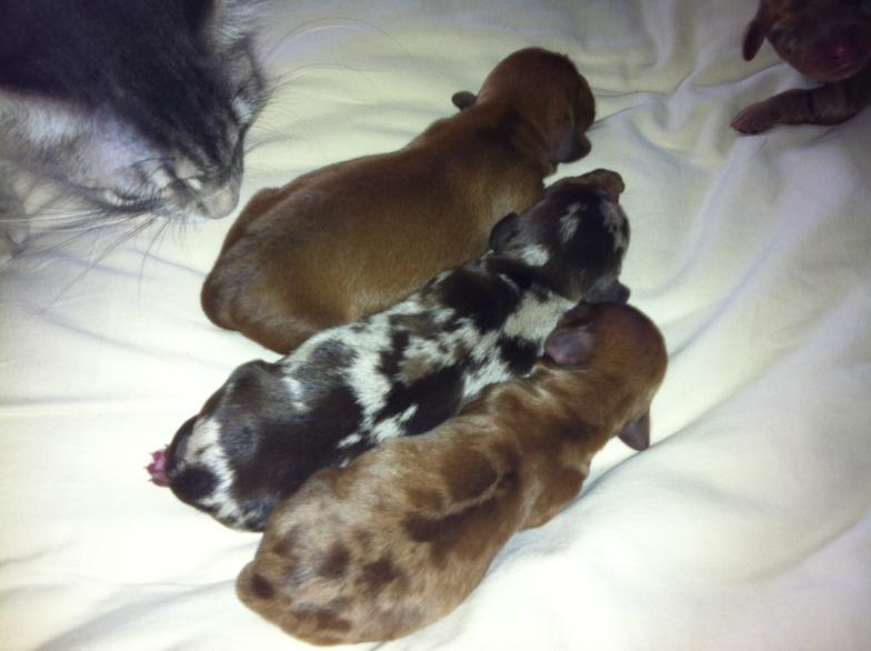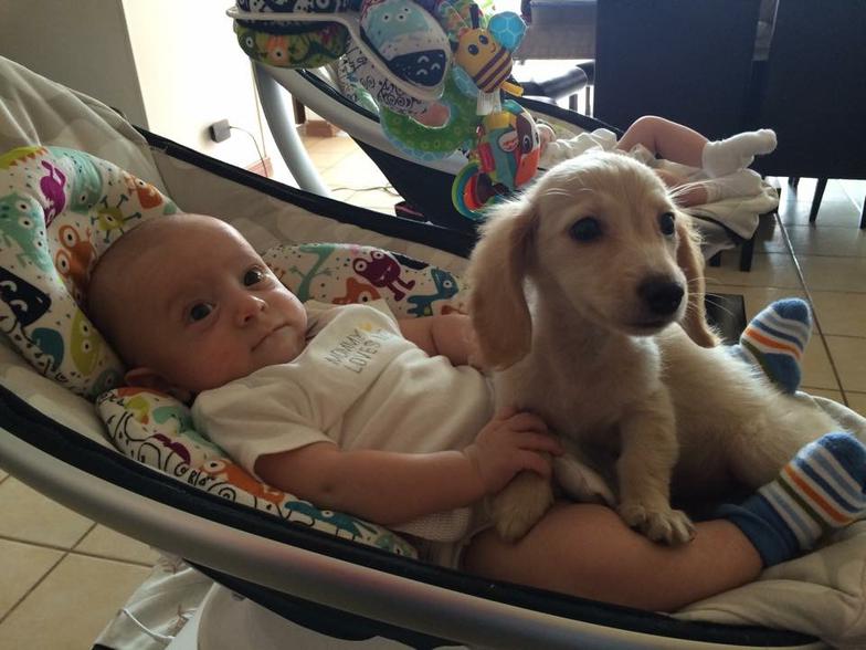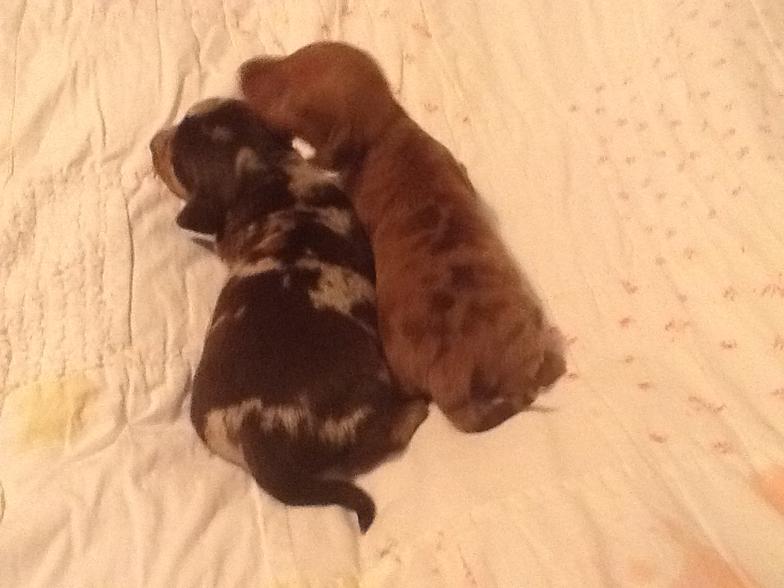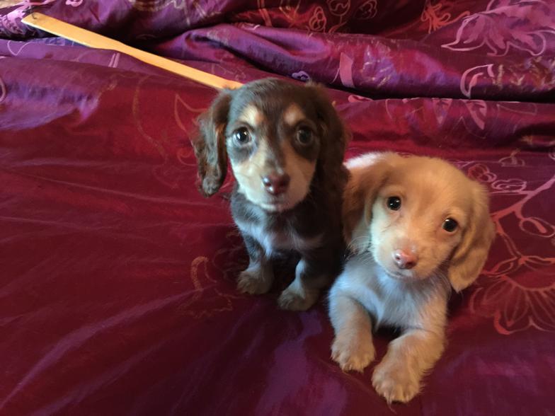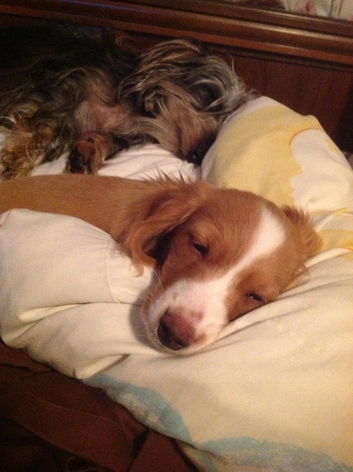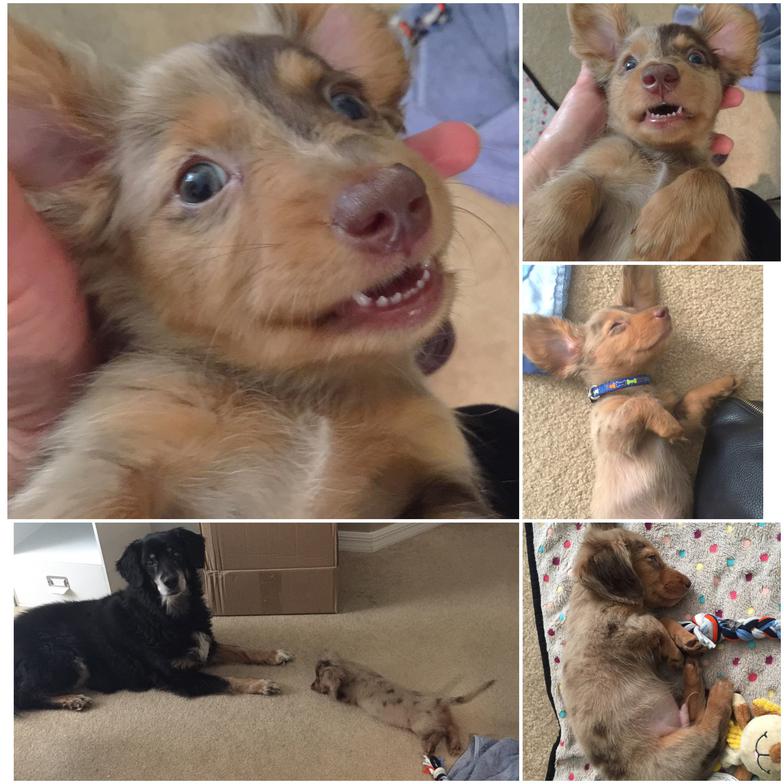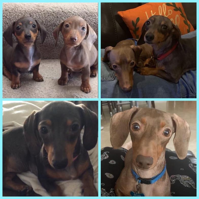 Mika & Bean - 12 weeks old top left and present day 2019 4 years 9 months!