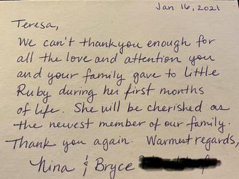 Teresa, I want to thank you and James for giving Jax such a good start in life. I promise he will always have a loving forever home with me.